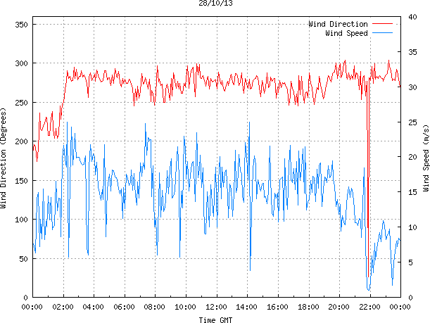 - Max Wind Speed: 25.0 ms-1 Time: 2:16:09 GMT