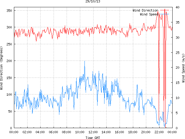 - Max Wind Speed: 22.1 ms-1 Time: 10:41:09 GMT