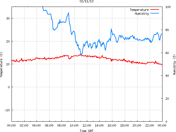 - Max Temp: 14.3 °C Time: 11:01:09 GMT