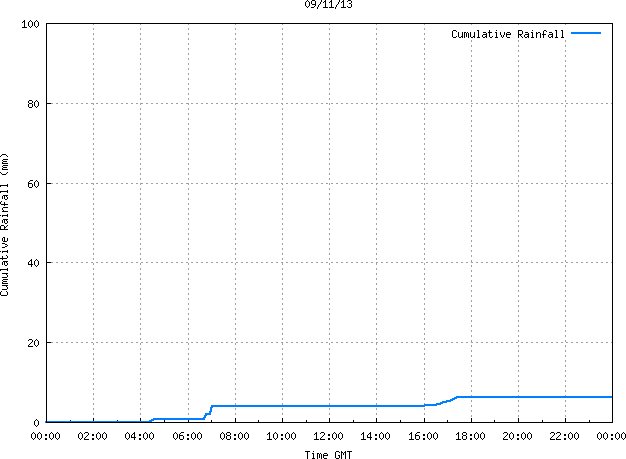 - Max Rainfall Rate: 24.00 mm h-1 Time: 7:01:09 GMT