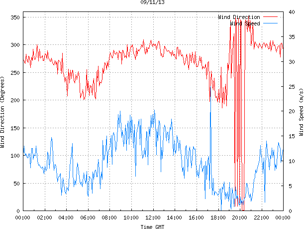 - Max Wind Speed: 25.0 ms-1 Time: 17:16:09 GMT