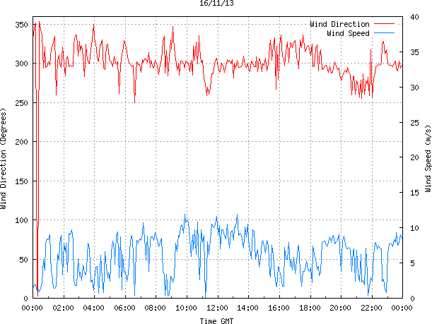 - Max Wind Speed: 11.9 ms-1 Time: 9:50:29 GMT