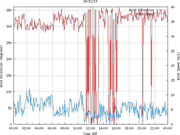 - Max Wind Speed: 12.3 ms-1 Time: 2:25:29 GMT