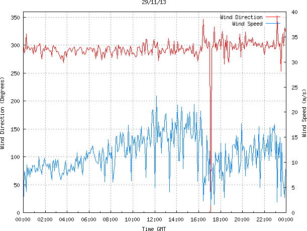 - Max Wind Speed: 23.2 ms-1 Time: 12:10:29 GMT