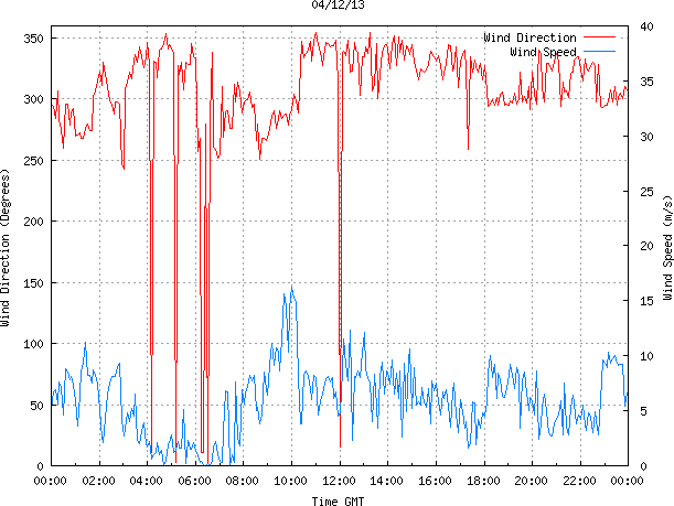- Max Wind Speed: 16.3 ms-1 Time: 10:00:29 GMT
