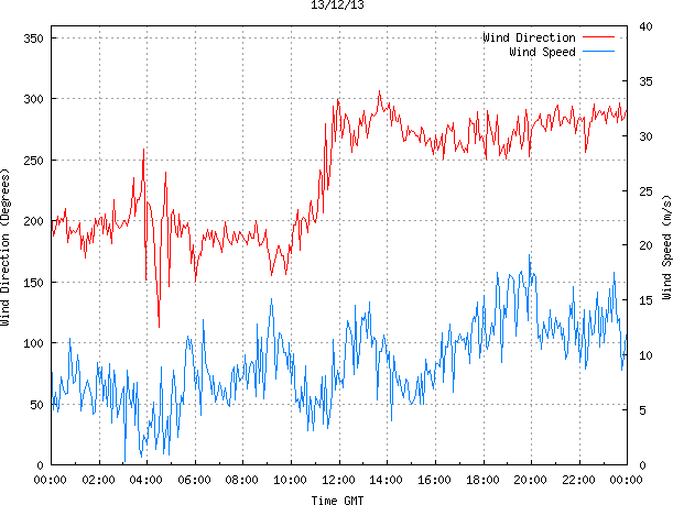 - Max Wind Speed: 19.2 ms-1 Time: 19:55:29 GMT