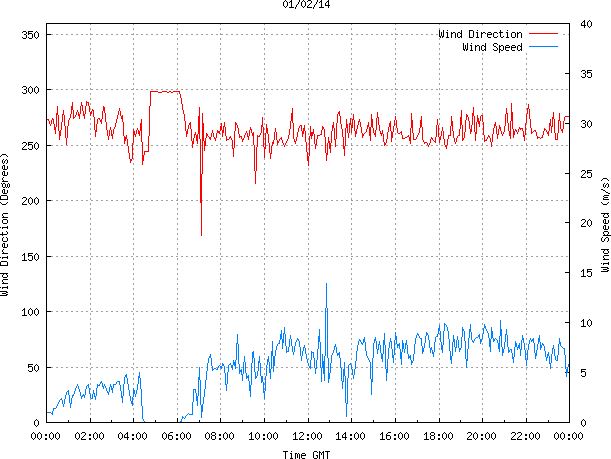 - Max Wind Speed: 13.9 ms-1 Time: 12:50:29 GMT