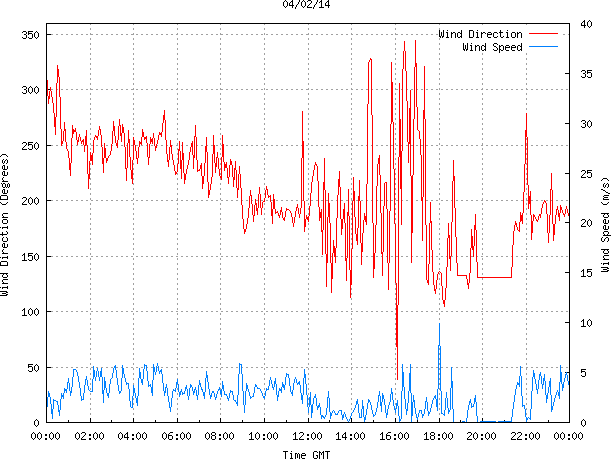 - Max Wind Speed: 9.9 ms-1 Time: 18:00:29 GMT
