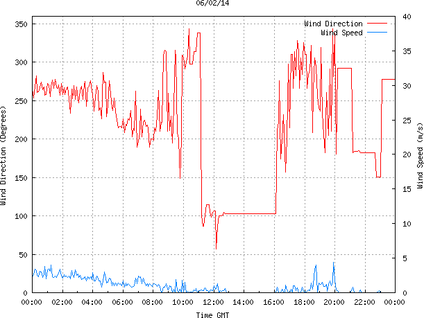 - Max Wind Speed: 4.5 ms-1 Time: 19:55:29 GMT