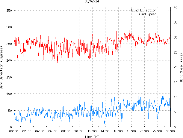 - Max Wind Speed: 11.1 ms-1 Time: 19:25:29 GMT