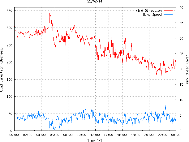 - Max Wind Speed: 8.1 ms-1 Time: 22:22:26 GMT