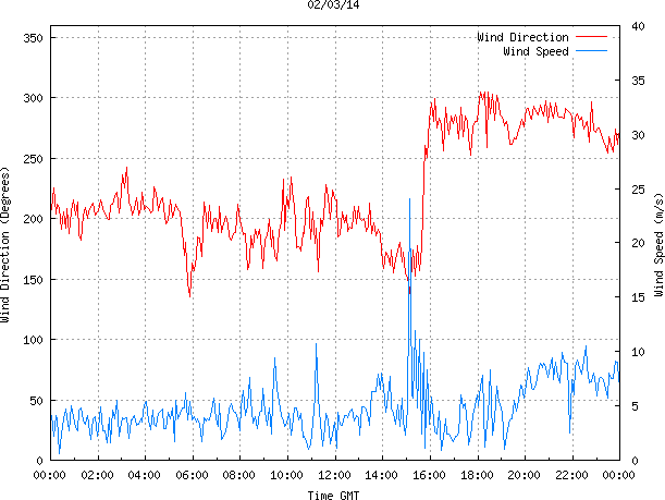 - Max Wind Speed: 24.0 ms-1 Time: 15:07:26 GMT