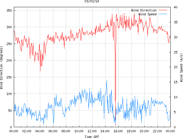 - Max Wind Speed: 15.7 ms-1 Time: 14:12:26 GMT