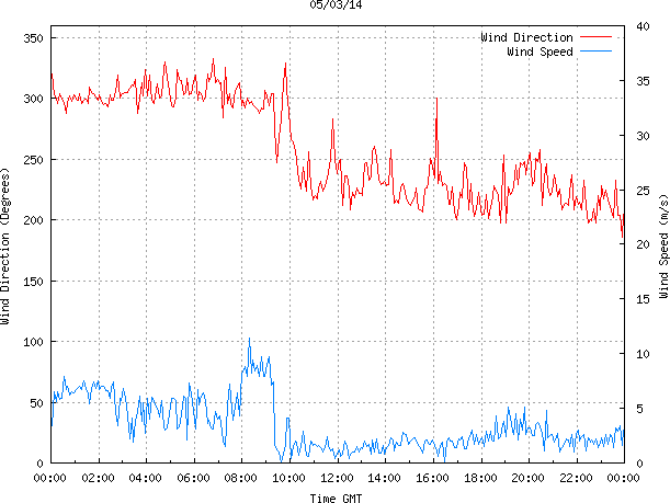 - Max Wind Speed: 11.5 ms-1 Time: 8:17:26 GMT