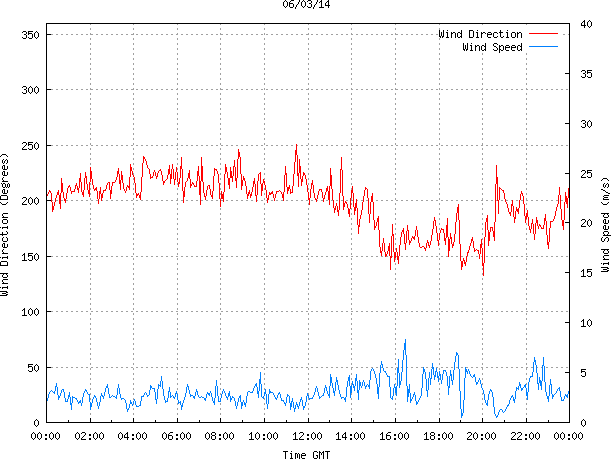 - Max Wind Speed: 8.3 ms-1 Time: 16:27:26 GMT