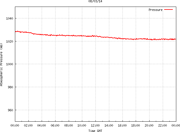 The PML meteorological station, situated on the south-west corner of the building roof, consists of a Hygroclip S3 temperature and humidity sensor housed in a radiation shield, a Mierij Meteo solid state wind sensor (MMW-005), a Chelsea instruments half-hemisphere PAR sensor, a Li-Cor pyranometer (LI-200SZ) and an Omni Instruments 6" tipping bucket raingauge (RG200). The data are logged every 5 minutes using a Pace Scientific XR5 data logger. The real-time rainfall data is likely in error - the correct values will be displayed after a time lag of approximately 24 hours. The meteorological station is sheltered from winds in the north-east and underestimates winds from this quarter. To use these data please contact Dr Tim Smyth.