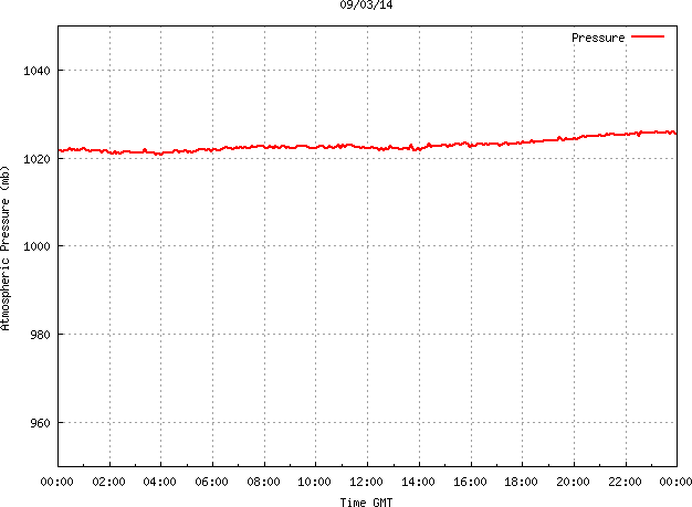 The PML meteorological station, situated on the south-west corner of the building roof, consists of a Hygroclip S3 temperature and humidity sensor housed in a radiation shield, a Mierij Meteo solid state wind sensor (MMW-005), a Chelsea instruments half-hemisphere PAR sensor, a Li-Cor pyranometer (LI-200SZ) and an Omni Instruments 6" tipping bucket raingauge (RG200). The data are logged every 5 minutes using a Pace Scientific XR5 data logger. The real-time rainfall data is likely in error - the correct values will be displayed after a time lag of approximately 24 hours. The meteorological station is sheltered from winds in the north-east and underestimates winds from this quarter. To use these data please contact Dr Tim Smyth.