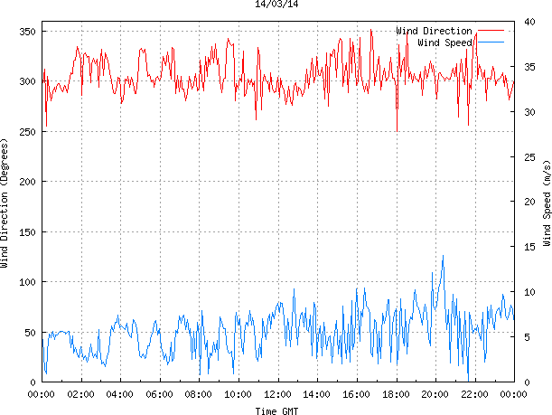 - Max Wind Speed: 14.0 ms-1 Time: 20:22:26 GMT