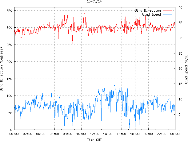 - Max Wind Speed: 15.1 ms-1 Time: 16:02:26 GMT