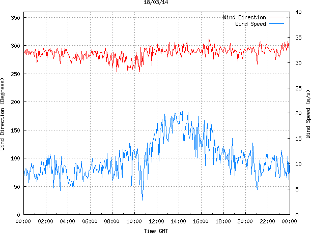 - Max Wind Speed: 20.3 ms-1 Time: 14:17:26 GMT