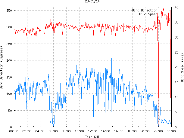 - Max Wind Speed: 22.8 ms-1 Time: 14:52:26 GMT