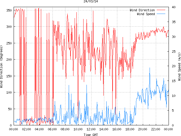 - Max Wind Speed: 19.4 ms-1 Time: 21:02:26 GMT