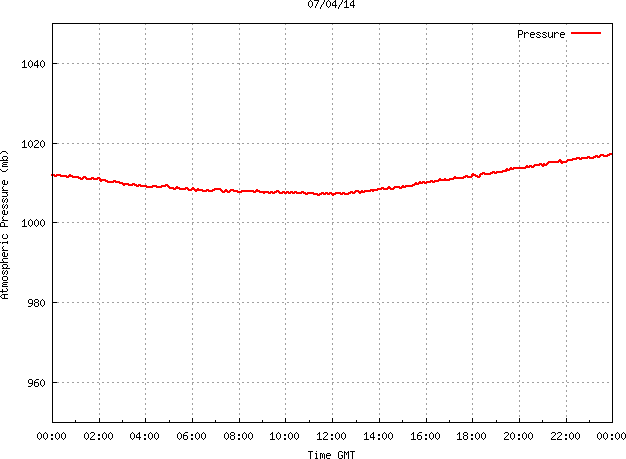 The PML meteorological station, situated on the south-west corner of the building roof, consists of a Hygroclip S3 temperature and humidity sensor housed in a radiation shield, a Mierij Meteo solid state wind sensor (MMW-005), a Chelsea instruments half-hemisphere PAR sensor, a Li-Cor pyranometer (LI-200SZ) and an Omni Instruments 6" tipping bucket raingauge (RG200). The data are logged every 5 minutes using a Pace Scientific XR5 data logger. The real-time rainfall data is likely in error - the correct values will be displayed after a time lag of approximately 24 hours. The meteorological station is sheltered from winds in the north-east and underestimates winds from this quarter. To use these data please contact Dr Tim Smyth.