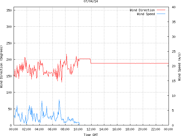- Max Wind Speed: 8.7 ms-1 Time: 7:01:06 GMT