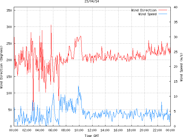 - Max Wind Speed: 13.5 ms-1 Time: 9:52:26 GMT