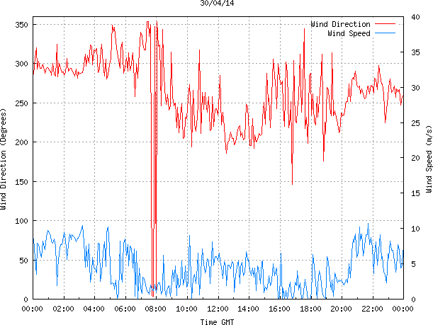 - Max Wind Speed: 10.7 ms-1 Time: 21:42:26 GMT