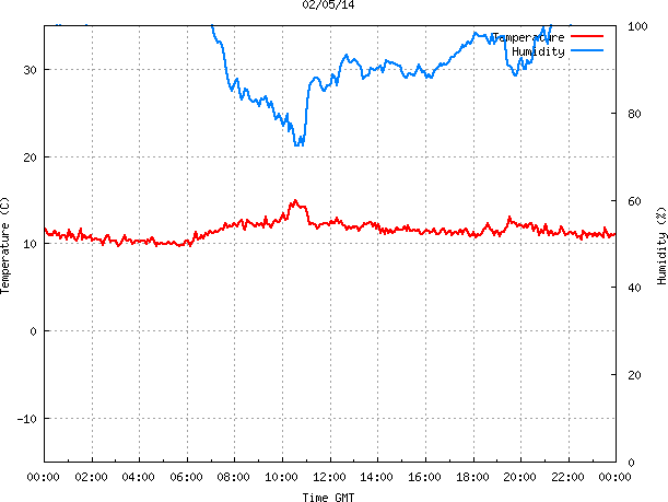 - Max Temp: 14.9 °C Time: 10:32:26 GMT