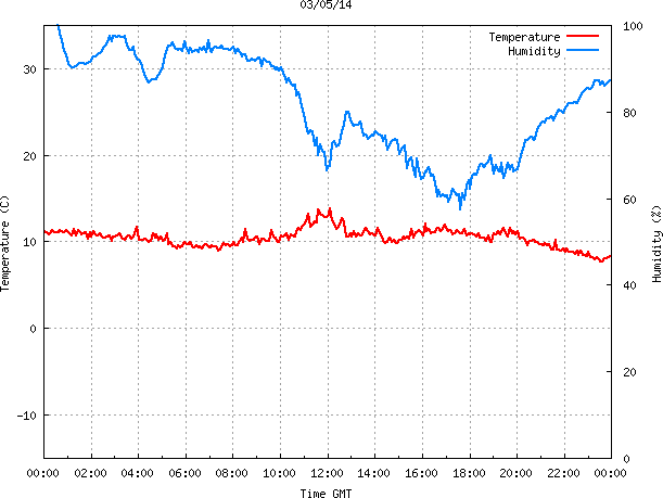 - Max Temp: 13.8 °C Time: 12:07:26 GMT