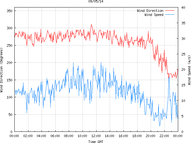 - Max Wind Speed: 22.3 ms-1 Time: 12:42:26 GMT