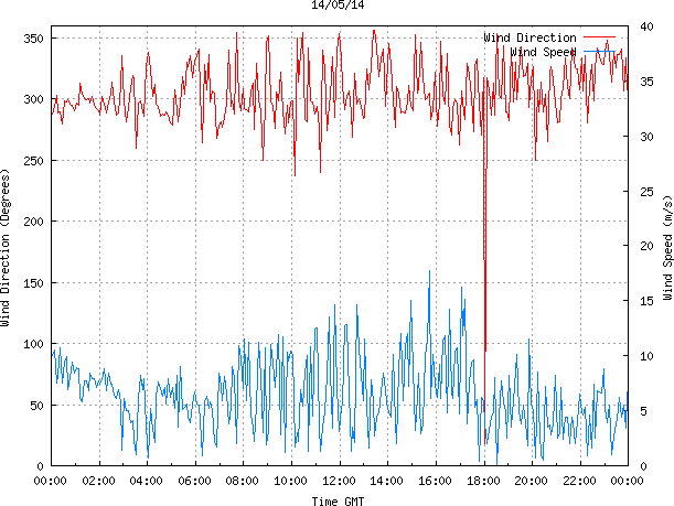 - Max Wind Speed: 17.8 ms-1 Time: 15:42:26 GMT