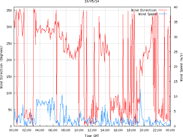 - Max Wind Speed: 12.3 ms-1 Time: 19:22:26 GMT