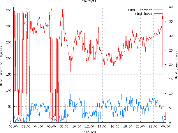 - Max Wind Speed: 13.6 ms-1 Time: 8:52:26 GMT