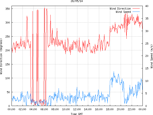 - Max Wind Speed: 13.7 ms-1 Time: 18:42:26 GMT