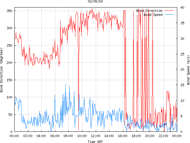 - Max Wind Speed: 15.2 ms-1 Time: 7:32:26 GMT