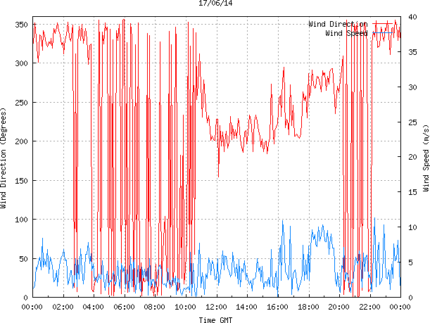 - Max Wind Speed: 11.4 ms-1 Time: 22:17:26 GMT