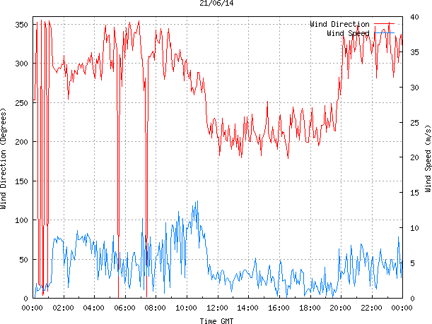 - Max Wind Speed: 13.8 ms-1 Time: 10:42:26 GMT