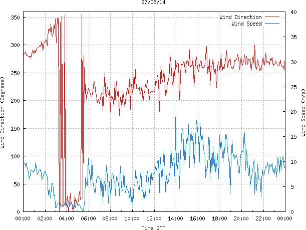 - Max Wind Speed: 18.9 ms-1 Time: 13:57:26 GMT