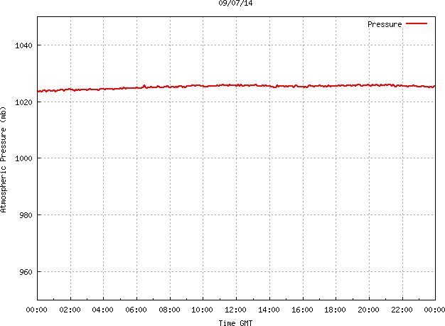 The PML meteorological station, situated on the south-west corner of the building roof, consists of a Hygroclip S3 temperature and humidity sensor housed in a radiation shield, a Mierij Meteo solid state wind sensor (MMW-005), a Chelsea instruments half-hemisphere PAR sensor, a Li-Cor pyranometer (LI-200SZ) and an Omni Instruments 6" tipping bucket raingauge (RG200). The data are logged every 5 minutes using a Pace Scientific XR5 data logger. The real-time rainfall data is likely in error - the correct values will be displayed after a time lag of approximately 24 hours. The meteorological station is sheltered from winds in the north-east and underestimates winds from this quarter. To use these data please contact Dr Tim Smyth.