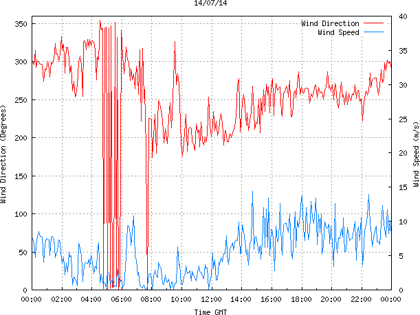 - Max Wind Speed: 14.5 ms-1 Time: 14:42:26 GMT