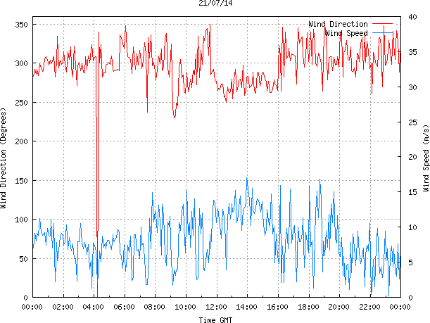 - Max Wind Speed: 17.0 ms-1 Time: 13:57:26 GMT