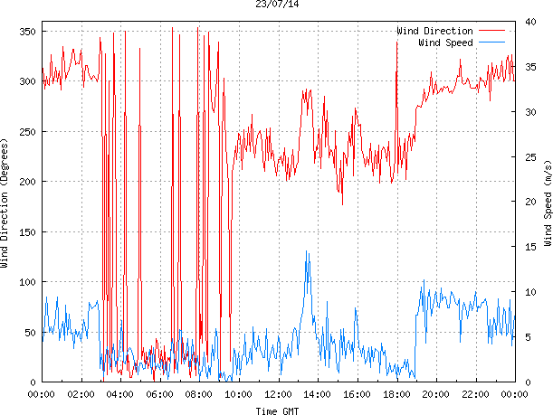 - Max Wind Speed: 14.5 ms-1 Time: 13:22:26 GMT
