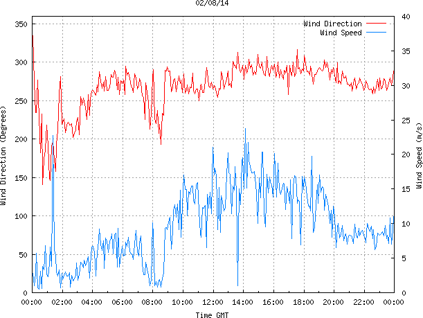 - Max Wind Speed: 23.8 ms-1 Time: 14:07:26 GMT