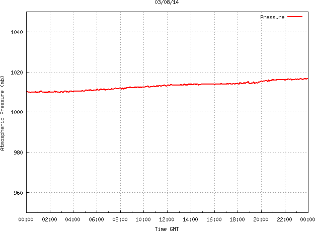 The PML meteorological station, situated on the south-west corner of the building roof, consists of a Hygroclip S3 temperature and humidity sensor housed in a radiation shield, a Mierij Meteo solid state wind sensor (MMW-005), a Chelsea instruments half-hemisphere PAR sensor, a Li-Cor pyranometer (LI-200SZ) and an Omni Instruments 6" tipping bucket raingauge (RG200). The data are logged every 5 minutes using a Pace Scientific XR5 data logger. The real-time rainfall data is likely in error - the correct values will be displayed after a time lag of approximately 24 hours. The meteorological station is sheltered from winds in the north-east and underestimates winds from this quarter. To use these data please contact Dr Tim Smyth.