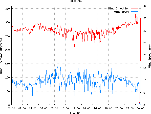 - Max Wind Speed: 17.3 ms-1 Time: 13:37:26 GMT