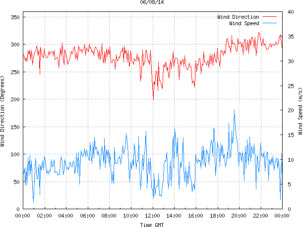 - Max Wind Speed: 20.0 ms-1 Time: 19:32:26 GMT