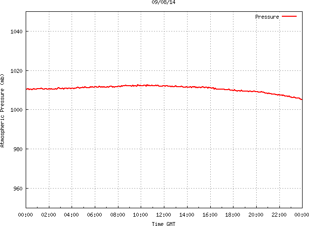 The PML meteorological station, situated on the south-west corner of the building roof, consists of a Hygroclip S3 temperature and humidity sensor housed in a radiation shield, a Mierij Meteo solid state wind sensor (MMW-005), a Chelsea instruments half-hemisphere PAR sensor, a Li-Cor pyranometer (LI-200SZ) and an Omni Instruments 6" tipping bucket raingauge (RG200). The data are logged every 5 minutes using a Pace Scientific XR5 data logger. The real-time rainfall data is likely in error - the correct values will be displayed after a time lag of approximately 24 hours. The meteorological station is sheltered from winds in the north-east and underestimates winds from this quarter. To use these data please contact Dr Tim Smyth.